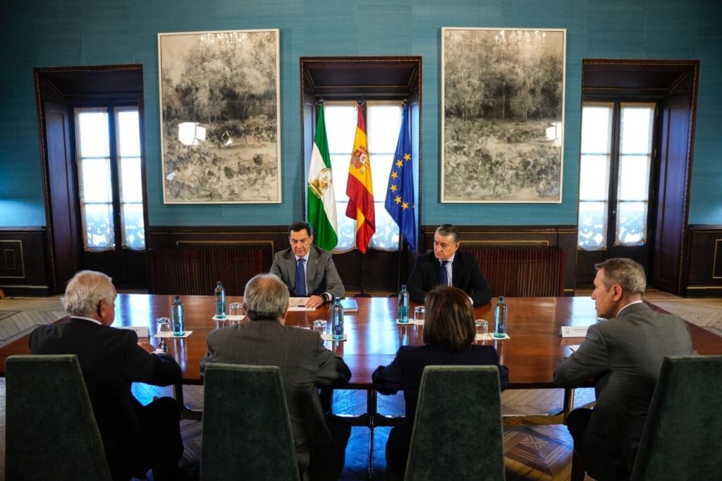 El Consejo Andaluz de Colegios de Médicos (CACM) ha mantenido una reunión institucional, previamente programada, con el presidente de la Junta de Andalucía, Juanma Moreno, acompañado del consejero de Presidencia, Antonio Sanz, quien ha asumido temporalmente las competencias de la Consejería de Salud y Consumo, para abordar los principales retos del sistema sanitario andaluz.