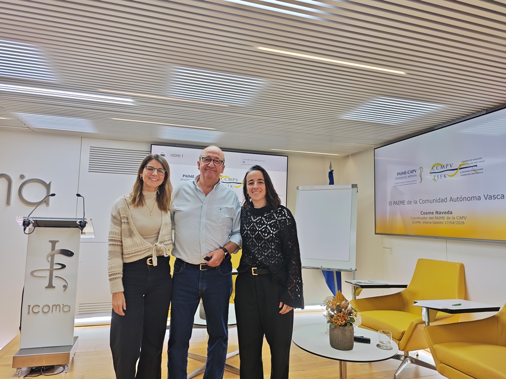 El taller ha contado como ponentes con el Dr. Cosme Naveda -especialista en Medicina Familiar y Comunitaria y coordinador del Programa de Atención Integral al Médico Enfermo (PAIME) País Vasco-, la Dra. Teresa Ponte -psiquiatra. y terapeuta PAIME- y Lucía Mendívil -psicóloga y terapeuta PAIME-.