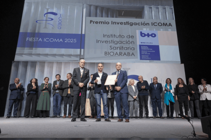 El Instituto de Investigación Sanitaria Bioaraba recibió el pasado viernes 21 de noviembre el Premio Investigación ICOMA 2025 en el Encuentro de la Profesión Médica que cada año organiza el Colegio de Médicos de Álava para reconocer la labor y dedicación de sus profesionales.