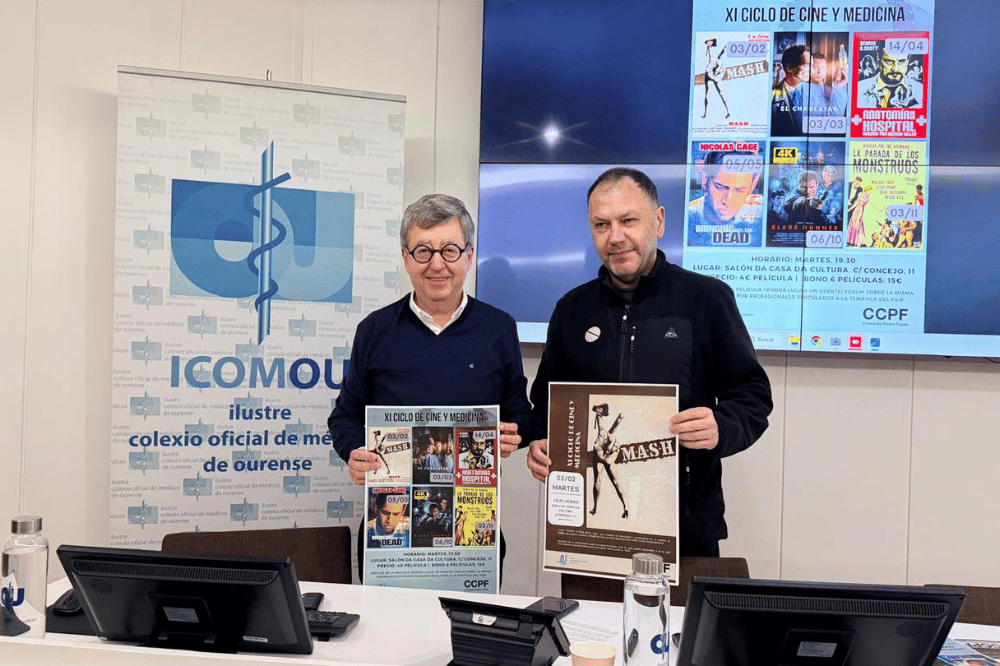 El Colegio Oficial de Médicos de Ourense (ICOMOU) y el Cineclube Padre Feijoo han presentado hoy, en rueda de prensa, la XI Edición del Ciclo de Cine y Medicina, una iniciativa cultural ya consolidada en la ciudad que, desde hace once años, invita a la ciudadanía a reflexionar sobre los grandes retos sanitarios, éticos y sociales a través del cine y el debate posterior.