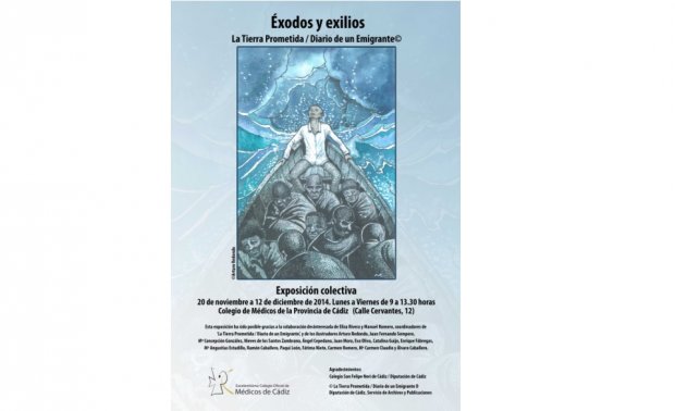 La sede del Colegio de Médicos de Cádiz (Cervantes, 12) acoge desde hoy jueves la exposición colectiva «Éxodos y exilios», que podrá visitarse hasta el 12 de diciembre. La muestra, conmemorativa del Día Internacional del Voluntariado que se celebra el 5 de diciembre, está integrada por un total de 17 ilustraciones de 16 autores que reflejan la odisea de la inmigración inspirados por el relato de Pathé Cissé, senegalés de origen, quien movido por la necesidad dejó su tierra natal y se aventuró por mar en la persecución llena de fe de un destino que fuera a la vez un nuevo punto de partida