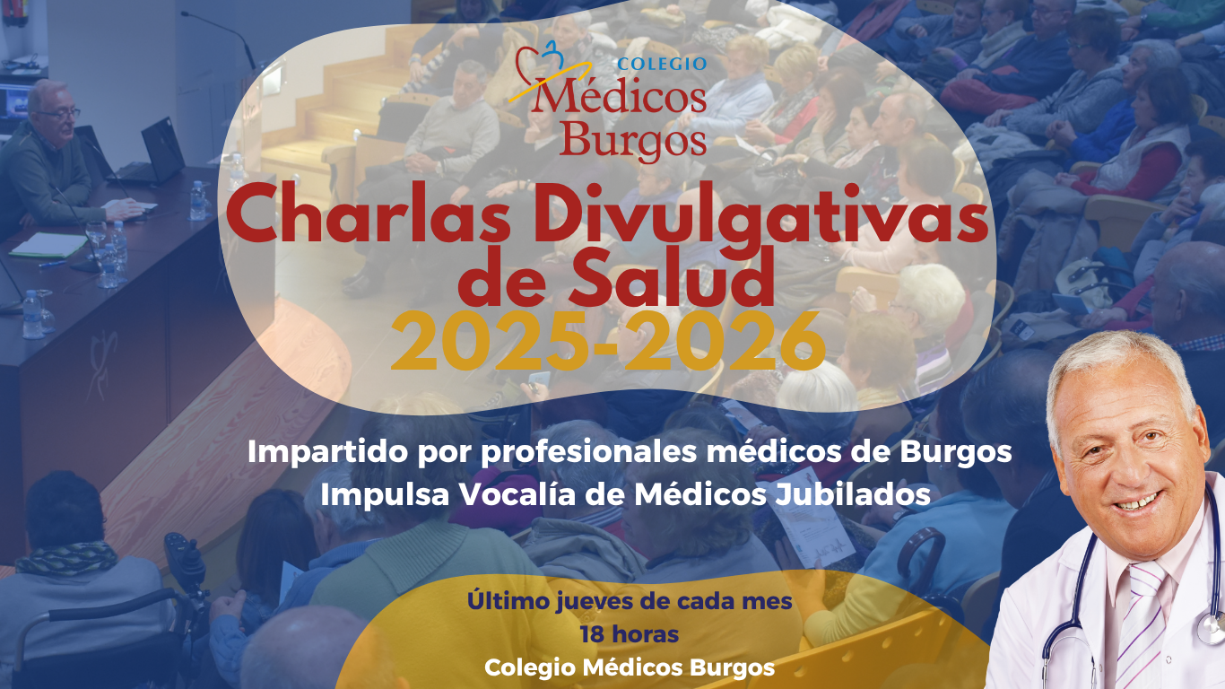 El Colegio de Médicos de Burgos pone en marcha una nueva edición del Ciclo Charlas Divulgativas de Salud 2025-2026, que ofrecerá una serie de encuentros mensuales dedicados a temas de actualidad médica, con destacados especialistas de diferentes áreas. Las sesiones, abiertas al público y de carácter gratuito, tendrán lugar a las 18:00 horas, desde octubre de 2025 hasta mayo de 2026.