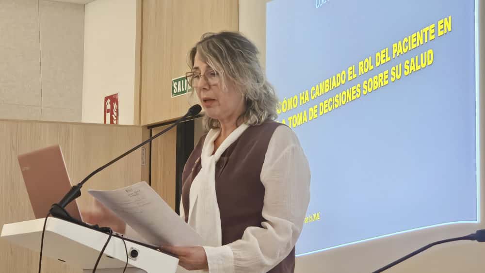 En el siguiente bloque de la mesa, con el paciente como protagonista, Rosa Arroyo, vicepresidenta segunda de la Organización Médica Colegial (OMC), señaló que, en el cambio de roles en la toma de decisiones, el paciente “ha pasado de ser receptor pasivo a protagonista, acompañado por su médico” y que la relación entre ambos “debe basarse en el respeto mutuo y la confianza dentro de los marcos legales y deontológicos de la profesión”.