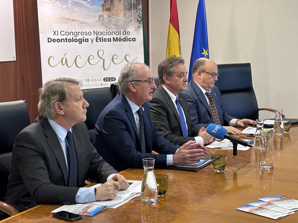 El congreso ha sido presentado hoy en una rueda de prensa celebrada en la sede del Colegio de Médicos de Cáceres, con la participación del presidente de la Organización Médica Colegial (OMC), el Dr. Tomás Cobo Castro; el presidente del Colegio de Médicos de Cáceres, el Dr. Evelio Robles Agüero; el presidente de la Comisión de Ética y Deontología Médica de la OMC, el Dr. José María Domínguez Roldán; y el presidente de la Comisión de Ética y Deontología del Colegio de Médicos de Cáceres, el Dr. José María Montero Juanes.