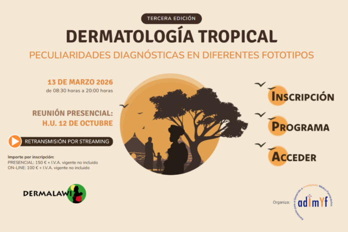 Madrid acogerá el próximo 13 de marzo de 2026 la tercera edición del curso “Dermatología Tropical: peculiaridades diagnósticas en diferentes fototipos”, una formación especializada organizada por la Asociación para el Desarrollo e Investigación Médico-Farmacéutica (ADIMYF) que reunirá a expertos nacionales e internacionales en dermatología clínica y cooperación sanitaria.