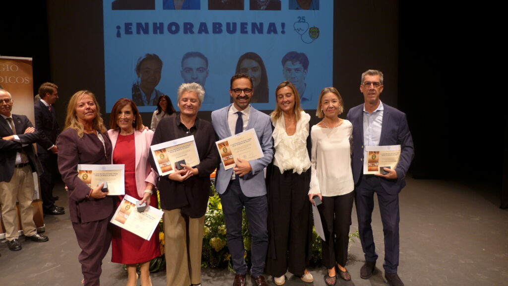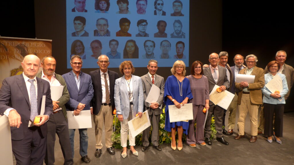 Igualmente, el teatro pudo rendir un tributo a quienes han colgado la bata tras una vida laboral intensa y larga. En ese 2025 los colegiados que recibieron la Insignia de Oro fueron: Fuencisla Hernández Pascual, Germán García-Salmones, Francisco Javier Rodríguez Recio, Celia Gamarra Carrera, Encarnación Gaitero Rodríguez, Agustín Moreno Aragoneses, Juan Carlos Hidalgo Santos, Leandro Briones Dieste, Enrique Hilanderas Jiménez, Adolfo de Pablos Domínguez, José Rodríguez Sanz, Alfredo Abella Gimeno, Magdalena Garrido Mesa y Rafael Sanz Ferreiro.