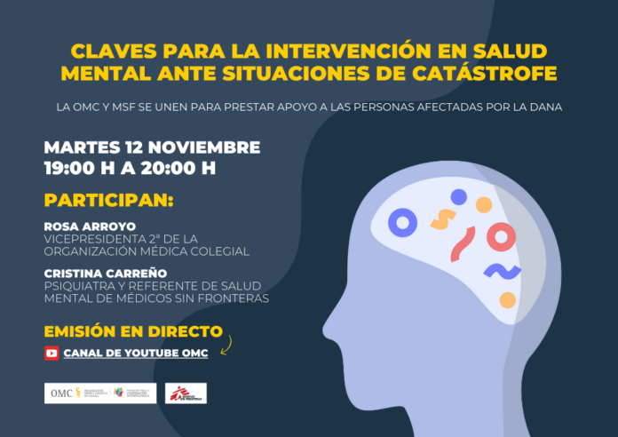 Este espacio formativo, diseñado con el único objetivo de ser útiles para los profesionales sanitarios al servicio de las personas afectadas por esta catástrofe, contará con la intervención de la psiquiatra y referente de salud mental de MSF, Cristina Carreño y la psicóloga Ariadna Pérez. La introducción a este espacio formativo-divulgativo correrá a cargo de la vicepresidenta segunda de la OMC, Rosa Arroyo.