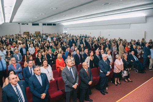 Durante el acto institucional todos los colegiados que cumplen sus bodas de oro y plata como médicos fueron reconocidos con la imposición del distintivo de manos de las autoridades presentes. La Dra. Mercedes Hurtado destacó en su discurso la entrega y compromiso de los compañeros presentes. “Habéis sido protagonistas con vuestro esfuerzo y dedicación de la creación del modelo sanitario y el resultado es el sistema que tenemos actualmente, envidiado y reconocido por la mayoría de países, y que sin duda, tiene como principal elemento la labor de los profesionales sanitarios que lo componen”.