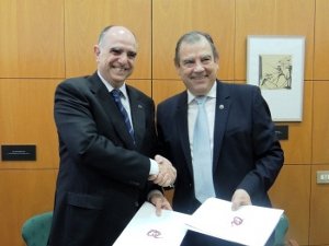 El presidente del Colegio de Médicos de Tarragona (COMT), Fernando Vizcarro, y el Rector de la Universidad Rovira i Virgili (URV), Xavier Grau, firmaron ayer un Convenio Marco de colaboración entre ambas instituciones así como un Convenio específico para la realización conjunta de formación en Deontología.