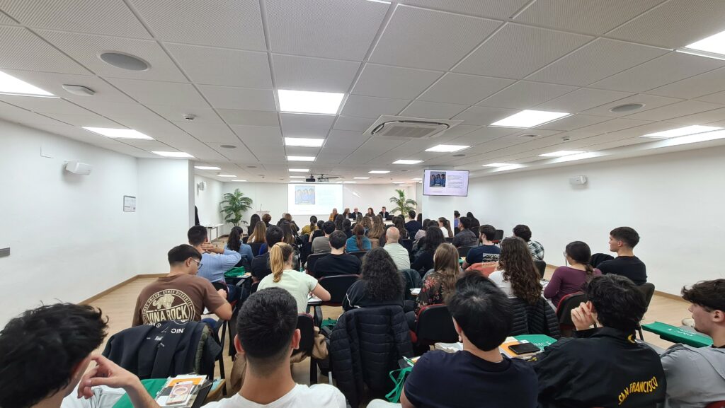 La segunda parte de la jornada abordó una cuestión cada vez más relevante: la salud del propio estudiante de Medicina y del médico. Bajo el título “Salud y hábitos del estudiante de Medicina y del médico; el autocuidado como responsabilidad ético-deontológica”, el programa profundizó en qué está ocurriendo con la salud del colectivo médico, cómo cuidarse y qué habilidades y competencias son necesarias para incorporar el autocuidado a la vida académica y profesional. El bloque, presentado por el Dr. Gonzalo Chacón, vocal de Médicos Jóvenes y de Promoción de Empleo del COM Alicante, fue impartido por el Dr. Rubén García e incluyó también una discusión sobre casos prácticos, aportando una visión cercana, aplicada y especialmente valiosa para los alumnos.